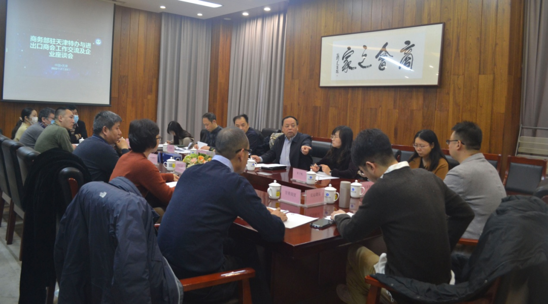 李胜利同志代表余弘力会长热情接待了刘长于特派员一行。胜利同志向特派员一行详细介绍了进出口商会基本情况和近几年来与商务部驻天津特办工作交流情况。胜利同志指出,多年来,天津特办是进出口商会的坚强后盾,进出口商会之所以在国内外、在天津有了一定的知名度,在创新和服务上取得了一些成绩,走出了一条独具特色、优势明显的社团发展之路,与天津特办的大力支持是分不开的,对此,表示衷心的感谢!同时对春节前夕天津突发疫情,特办领导及工作人员放弃春节假期,坚守一线工作岗位,表示由衷的敬意。他希望今后天津特办继续给予商会帮助和支持,进出口商会绝不辜负特办的期望,一定当好天津外贸战线得“信息员”和最贴心的“服务员”。刘长于特派员指出,商务部天津特办与天津进出口商会一直保持着良好的工作关系,双方工作互动频繁,为商务部了解和掌握区域真实、“鲜活”的信息,对科学决策和指导工作意义非常大,希望进出口商会一如既往的协调特办做好调研和信息采集工作,帮助外贸企业协调和解决实际问题,为外经贸事业高质量发展做出应有贡献。天津特办全力支持进出口商会主导的“华北五省区市进出口商协会联盟”工作。工作交流结束后,刘长于特派员主持召开了外贸企业座谈会,参会外贸进出口企业、物流企业、外综平台企业、国际会展企业就当前形势下,业务开展情况、对形势的预判、企业经营中的困难和问题、企业主要诉求等分别进行了发言,刘特派员在听取发言后表示,特办非常理解企业反映的外贸宏观面好、企业微观面困难的现状,会后将归纳整理企业反馈,原汁原味地向上级及其它相关部门反映企业建议诉求,并协调问题的解决,进一步推动外贸便利化政策贯彻落实,把当前国家关于稳外贸的政策措施落到实处。胜利同志表示,本次座谈会是一个很好的开端,商会还将组织不同外贸版块交流座谈,进出口商会将千方百计搭建好企业与政府间的沟通桥梁,确保外经贸企业与政府的信息沟通畅通无阻,为企业所反映的问题能够取得积极回应和最终解决创造条件。