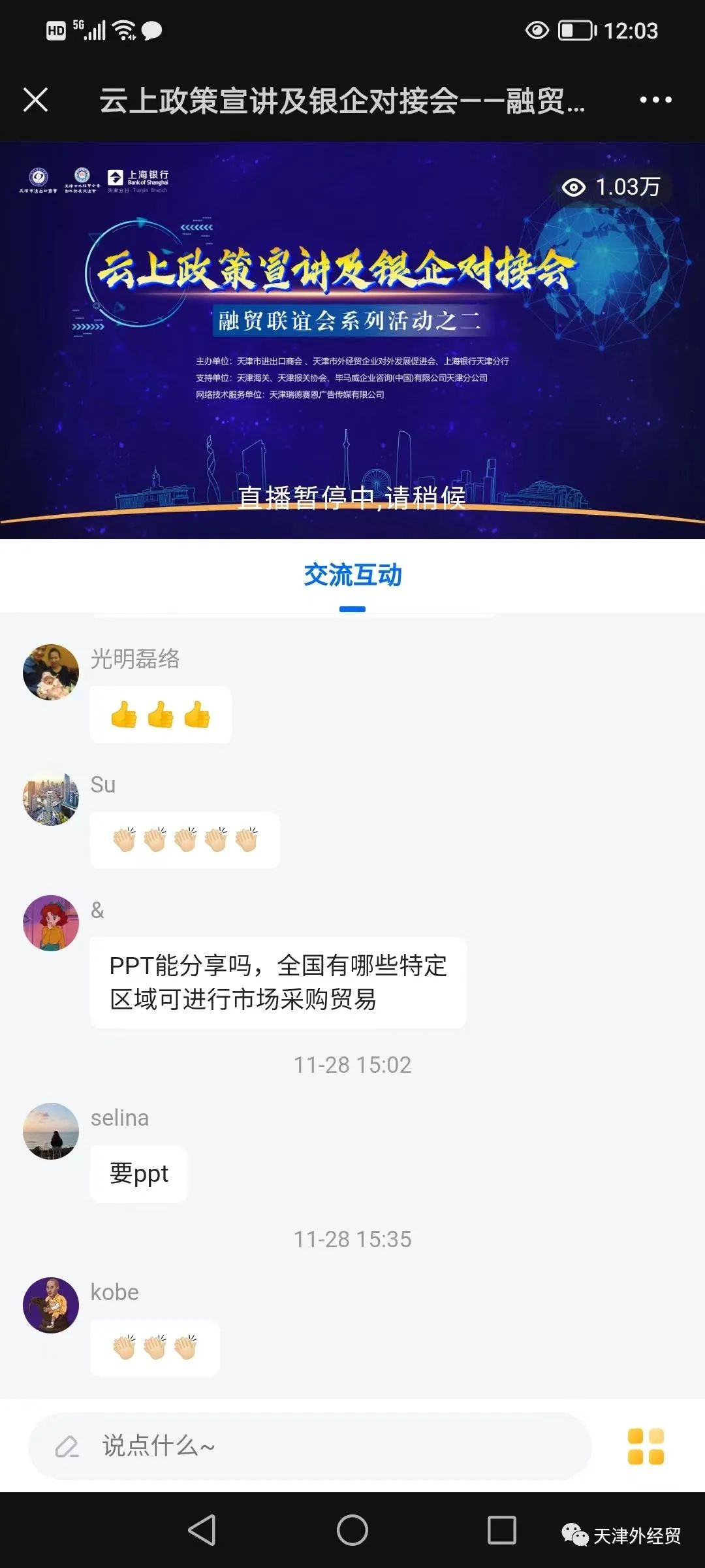 ;上海银行推介了支持外贸实体企业发展“外贸微贷”和“信易融”两款特色金融产品,活动还开设了直播问答互动环节。数据显示,累计观看人数超过一万人次。